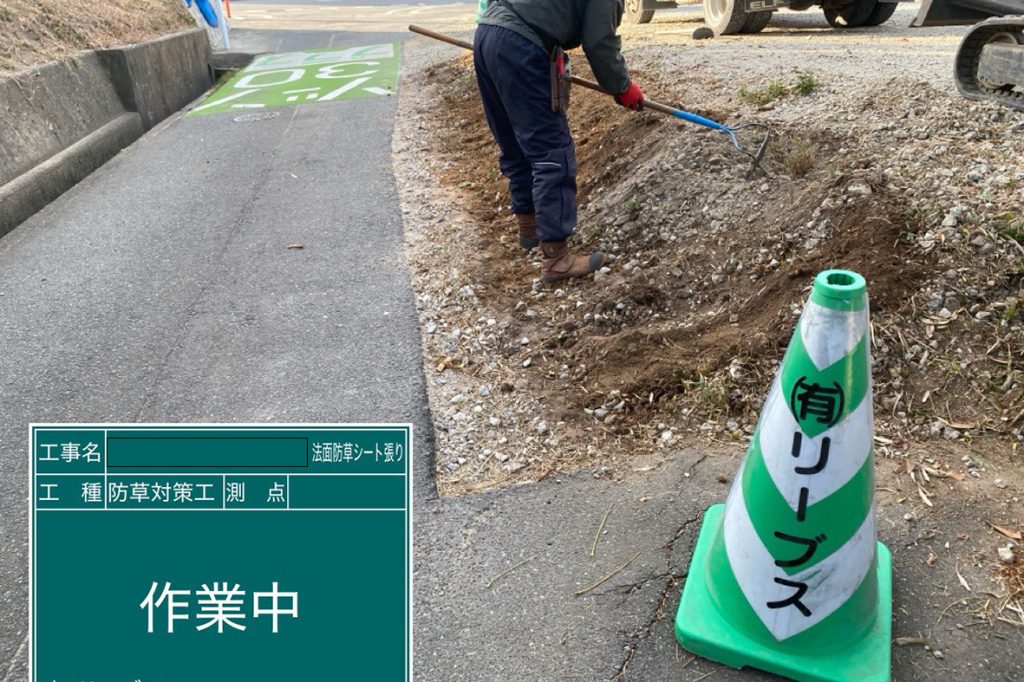 公共工事でも施工実績の高い「防草シート」を採用。
