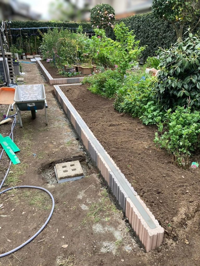 ↑土留めにブロックを施工。